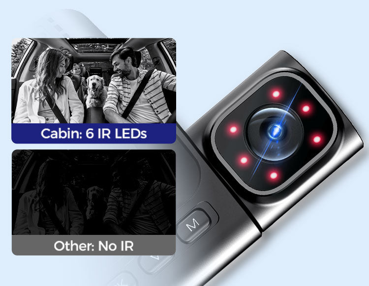 La cámara interior integrada graba una zona aún mayor dentro y alrededor del coche. La cámara interior se acopla al lateral de la cámara delantera y se puede colocar en la dirección correcta. Graba el interior del coche y, por lo tanto, también una gran parte del exterior. Por lo tanto, la cámara interior adicional es ideal como seguridad adicional para el modo parking.