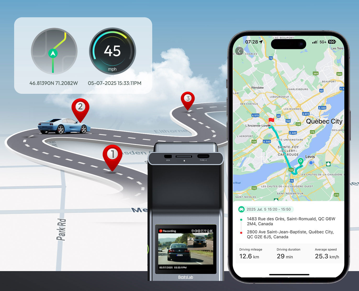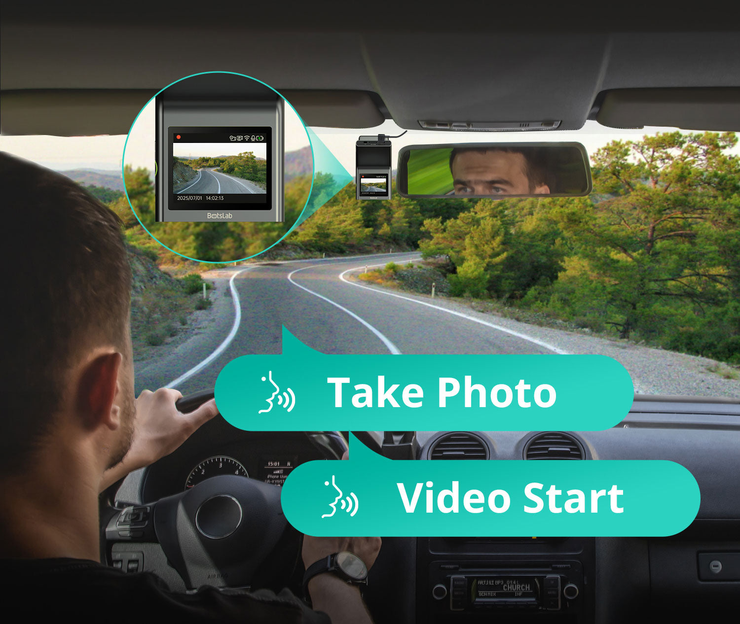 La Botslab G300H Plus comienza a grabar automáticamente en cuanto se arranca el coche y se detiene cuando se apaga el contacto. De este modo, no es necesario manejar nada mientras se conduce.