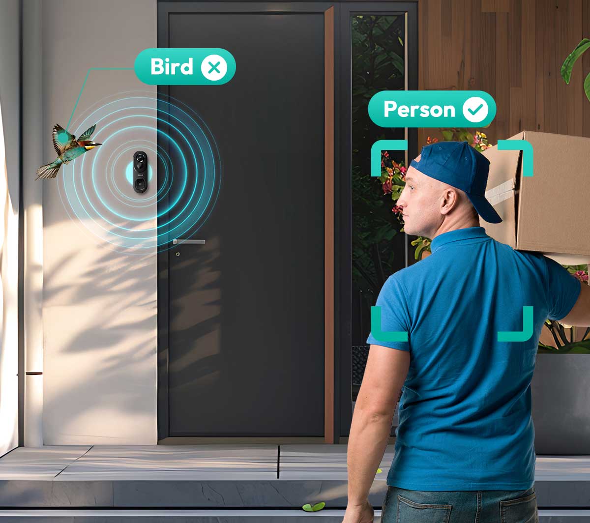 Gracias a la combinación de sensores de radar y PIR, el Botslab R810 detecta con precisión la presencia de personas en su puerta. Gracias al avanzado software, no tendrá que preocuparse por falsas alarmas causadas, por ejemplo, por hojas u otros movimientos en el entorno.