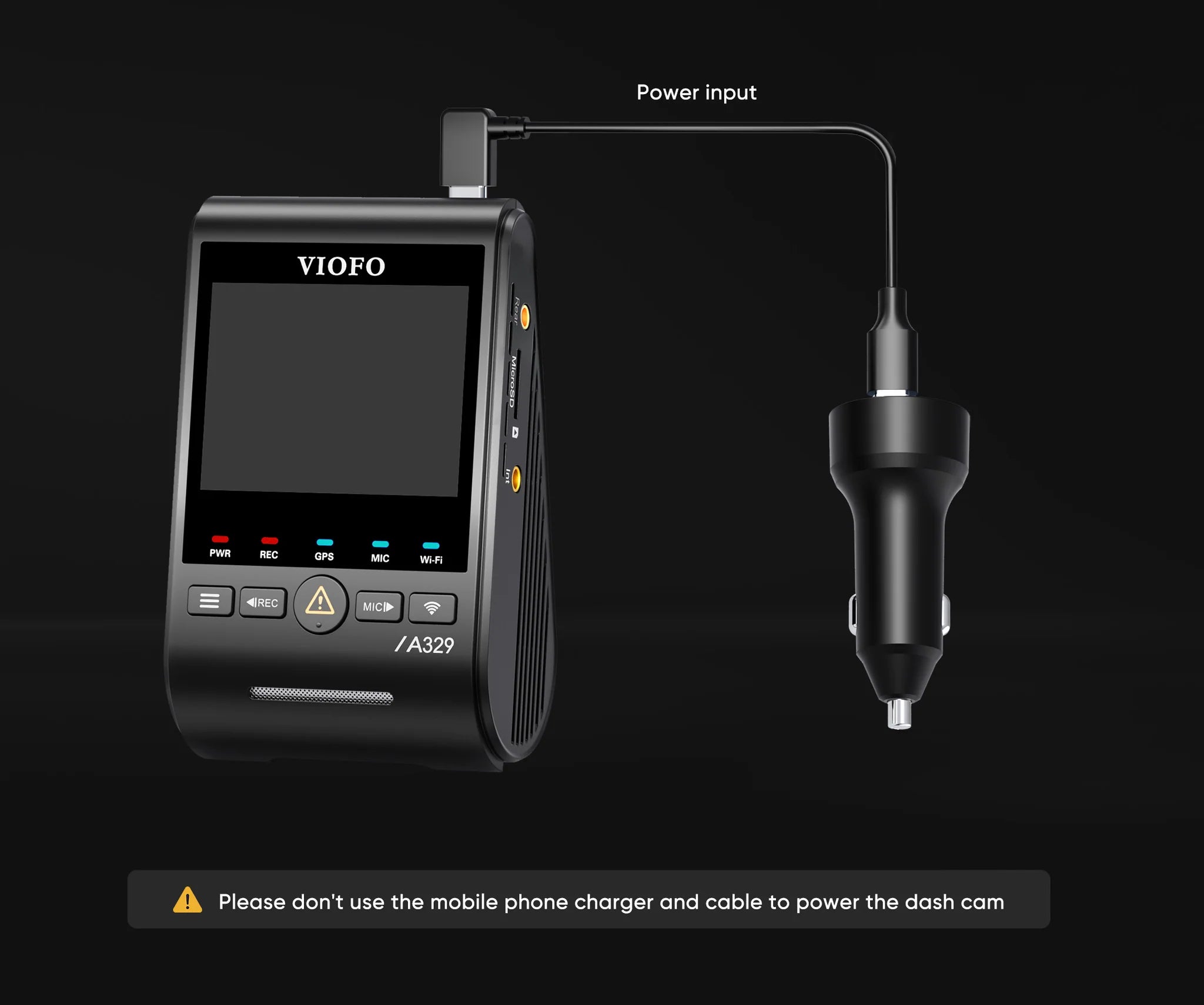 La dashcam Viofo A329S 1CH comienza a grabar automáticamente cuando se arranca el coche. Así que ya no tienes que preocuparte por ella cuando está instalada en el coche. La única condición es que esté conectada a la alimentación del coche.