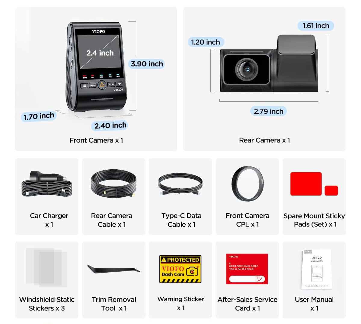 La Viofo A329S 2CH está equipada con la nueva tecnología Wifi6 (5GHz) ultrarrápida, lo que hace que la transferencia de archivos sea muy rápida y fiable. Con Wifi 6 se pueden transferir hasta 30 MB/s de datos. La aplicación Viofo está disponible para iOS y Android.