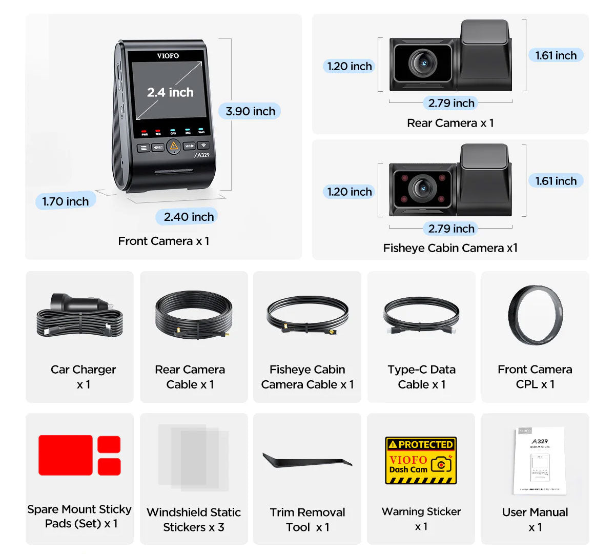La Viofo A329S 3CH Pro 4K wifi GPS es el último modelo de la popular y fiable serie A329S con nada menos que tres cámaras. La Viofo A329S 3CH 4K puede vigilar la carretera por delante y por detrás, y grabar al conductor y a los pasajeros con la cámara interior. Con el sensor de imagen Sony Starvis 2 de 5,0 MP integrado, la A329S ofrece imágenes nítidas, tanto por delante como por detrás y en el interior del coche.